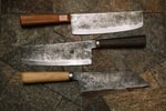 Trois couteaux de cuisine : deux nakiris et un bunka