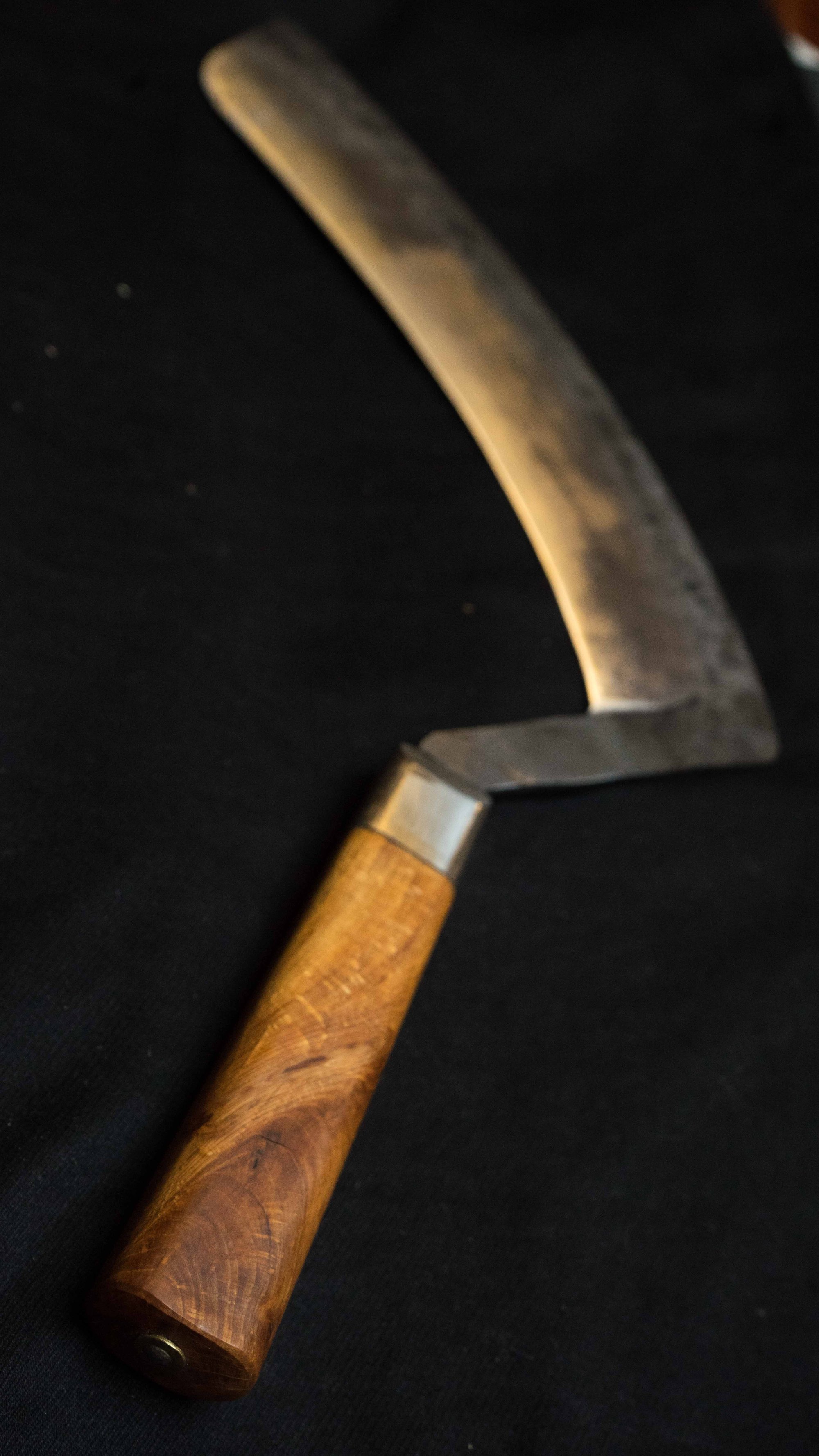 Une faucille à pain ou tranche pain ou encore serpe à pain, pour couper de belles tranches dans des grosses miches de pain.